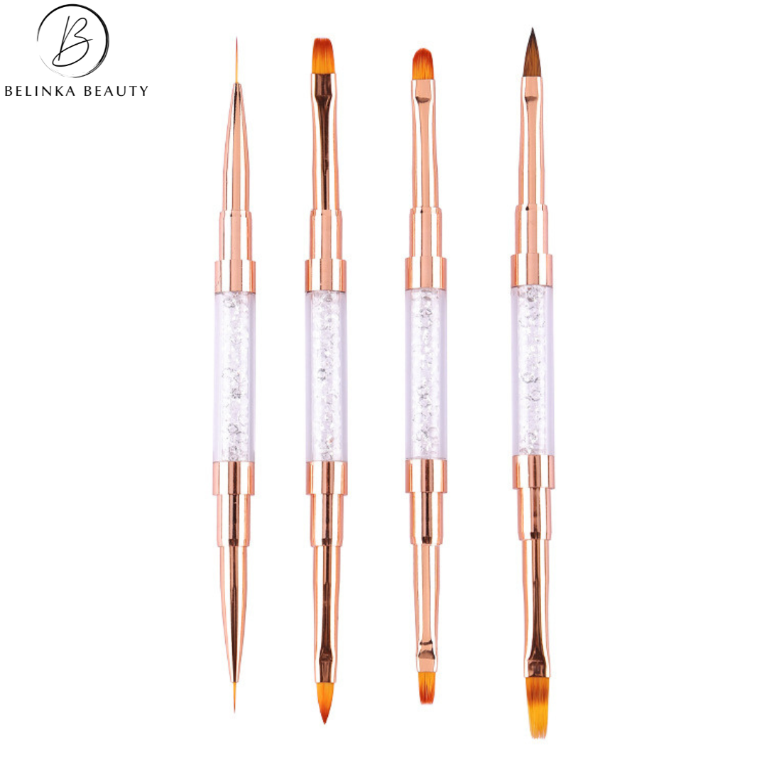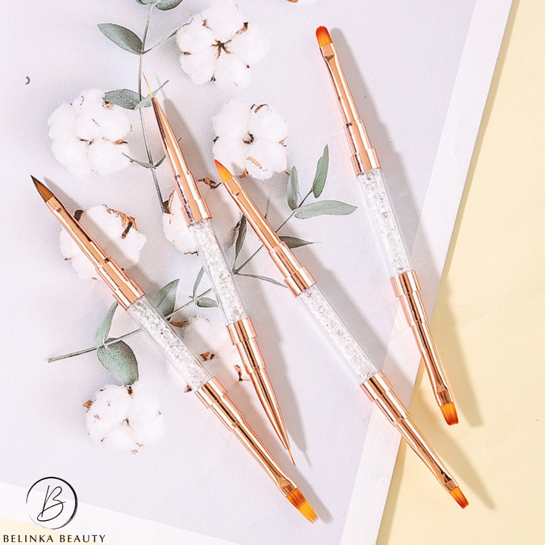 Set of 4 double-sided brushes for nail modeling and nail art.
