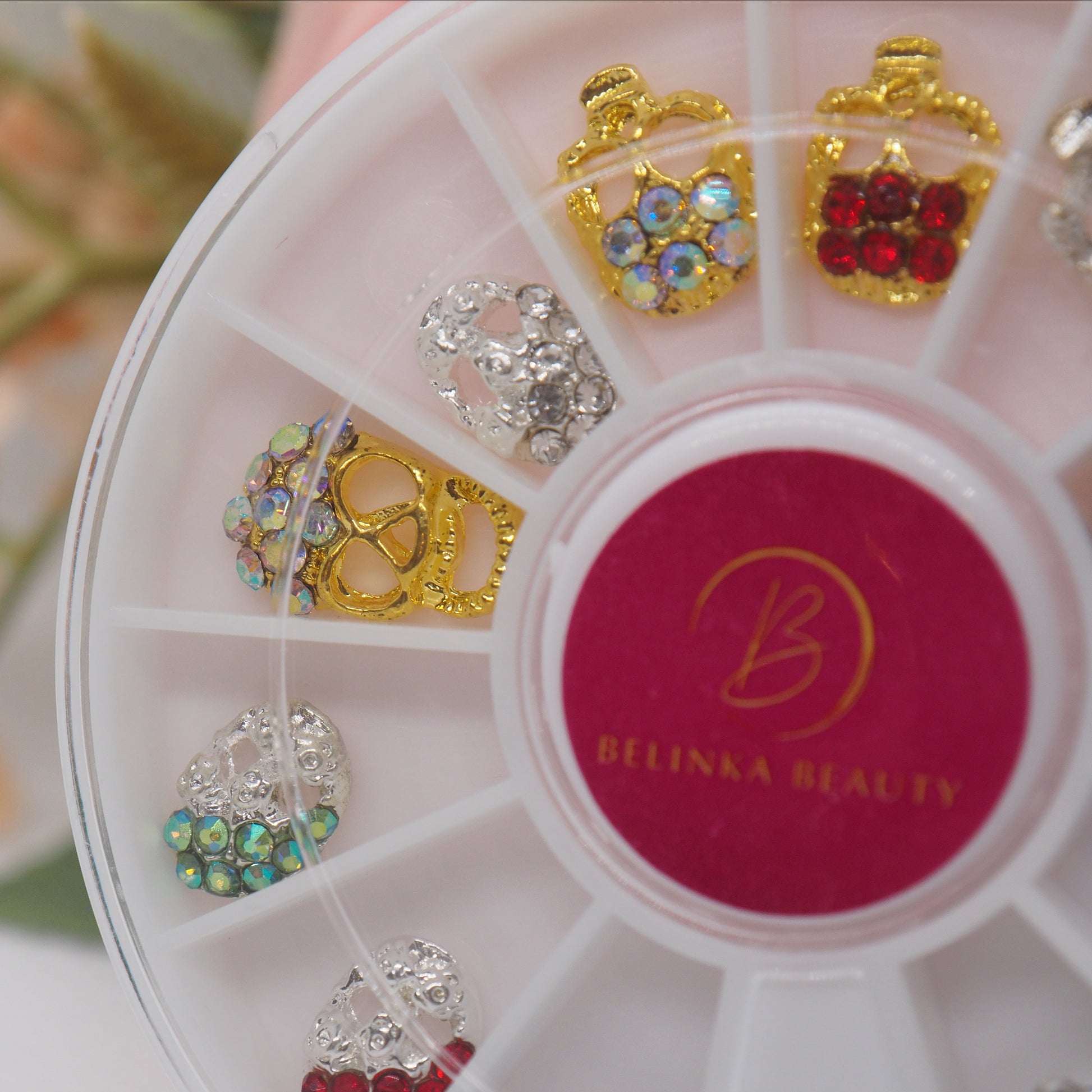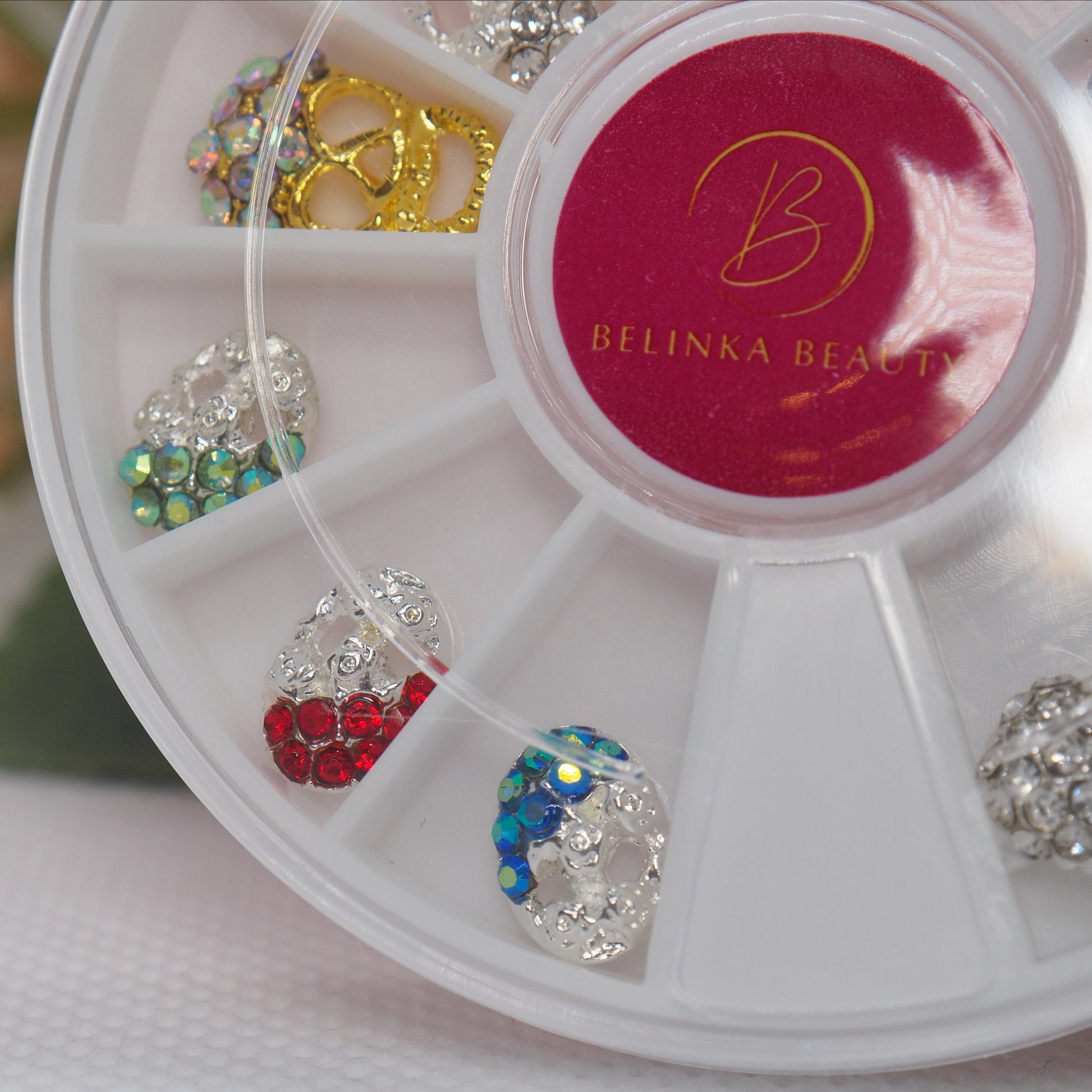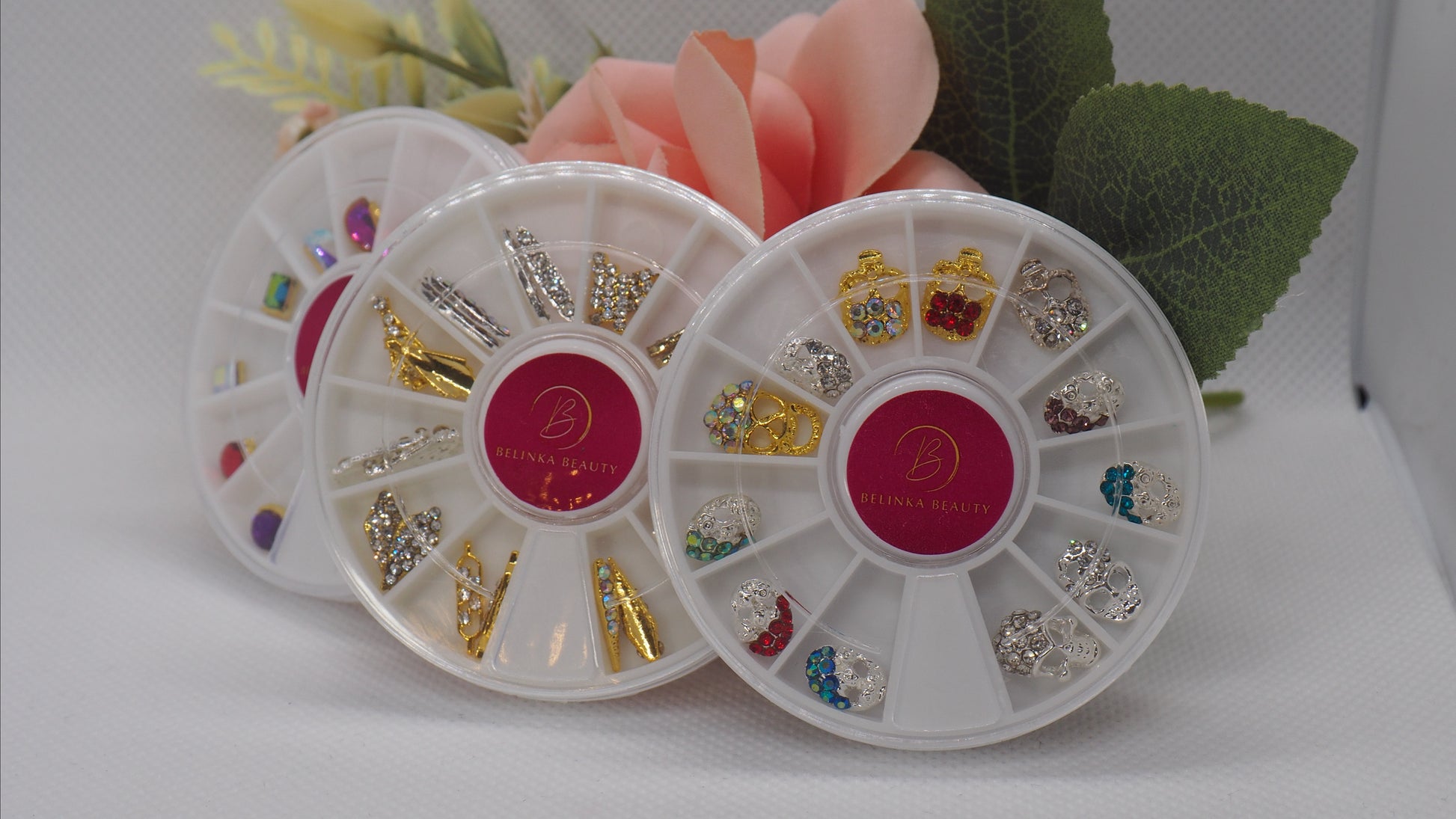 Karusel obsahuje 12 nádherných kúskov nechtovej bižutérie vysokej kvality. Sú zo spodnej strany jemne zaoblené, aby lepšie sadli na necht. Kamienky rôznych typov a veľkostí majú jasný a číry vzhľad a brus podobný diamantom, ktorý háďže výrazné odlesky. Zmes kovov vysokej kvality zaručuje, že bižutéria ostane dlho lesklá a žiarivá bez výrazných zmien farby. Nestmavne, nesčerná, nezmatnie a najmä, vydrží nádherná až do ďalšej prerábky nechtov (s použitím nášho Iconic Fixing gélu)