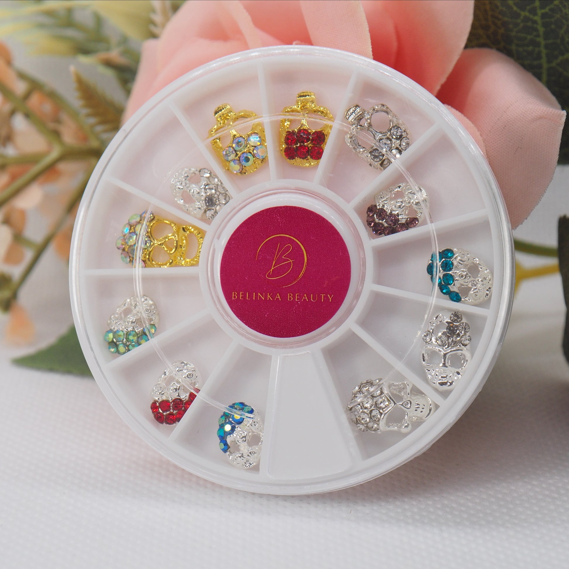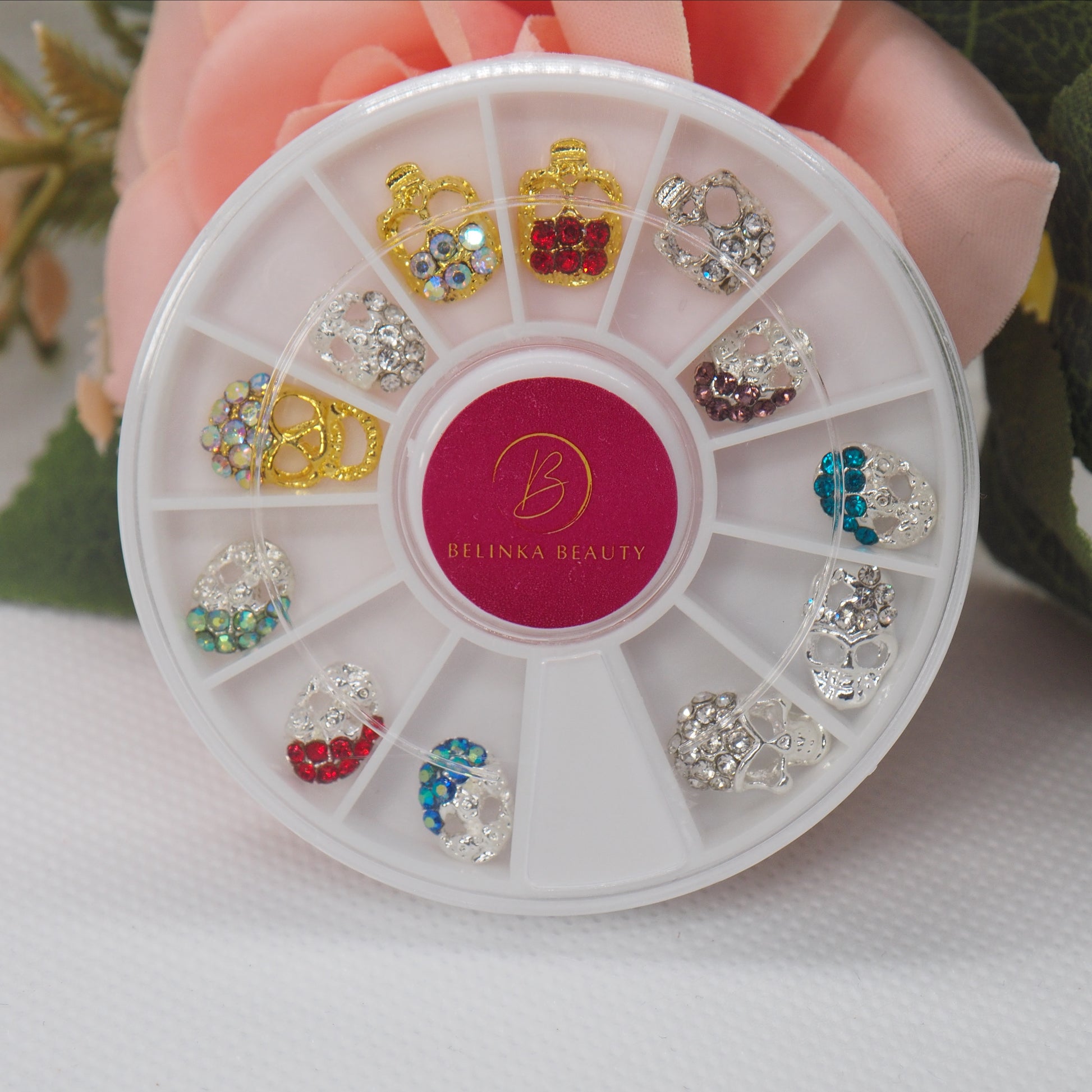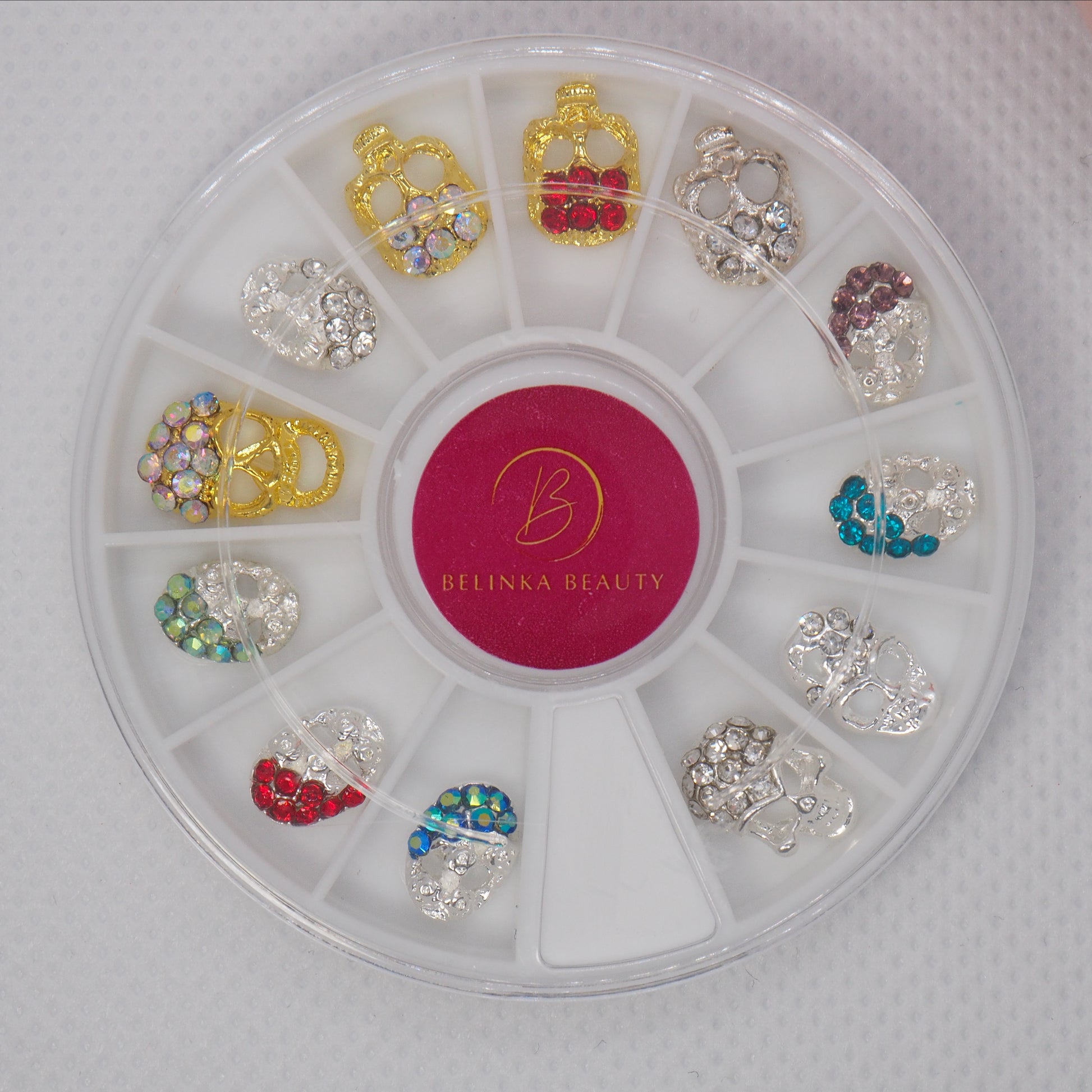 Karusel obsahuje 12 nádherných kúskov nechtovej bižutérie vysokej kvality. Sú zo spodnej strany jemne zaoblené, aby lepšie sadli na necht. Kamienky rôznych typov a veľkostí majú jasný a číry vzhľad a brus podobný diamantom, ktorý háďže výrazné odlesky. Zmes kovov vysokej kvality zaručuje, že bižutéria ostane dlho lesklá a žiarivá bez výrazných zmien farby. Nestmavne, nesčerná, nezmatnie a najmä, vydrží nádherná až do ďalšej prerábky nechtov (s použitím nášho Iconic Fixing gélu)