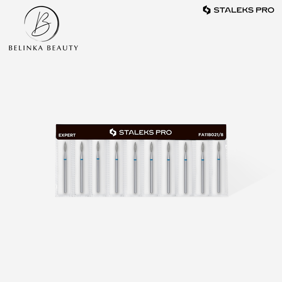 Staleks Expert Diamantový brúsny nadstavec špicatý flame blue 2,1mm/8mm - FA11B021/8 je diamantový nadstavec so strednou zrnitosťou v tvare špicatého plameňa s priemerom 2,1mm a dĺžkou pracovnej časti 8mm. Vhodný na úpravu drsnejšej nechtovej kutikuly a kože, zdvihnutie a odstraňovanie kutikuly. Vďaka špeciálnemu spôsobu nanášania diamantového piesku je pracovná časť nadstavca hladká a bez nebezpečných výčnelkov.